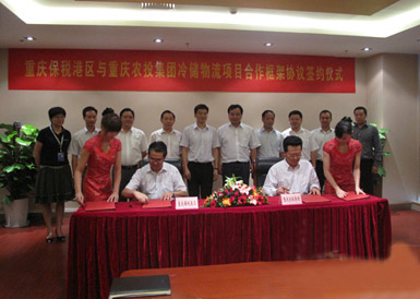 2010年8月26日14时,重庆保税港区将与重庆农投集团“联姻”,共同投资组建保税冷链物流公司,打造西部第一、全国一流的冷链物流基地。2010年8月26日上午,双方共同签署了这一冷储物流项目合作框架协议。