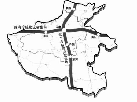 陇海冷链物流密集带,依托陇海铁路和连霍高速公路,以郑州和洛阳、商丘为重点。京广冷链物流密集带,依托京广铁路和京港澳高速公路,以郑州和漯河、许昌、鹤壁为重点。